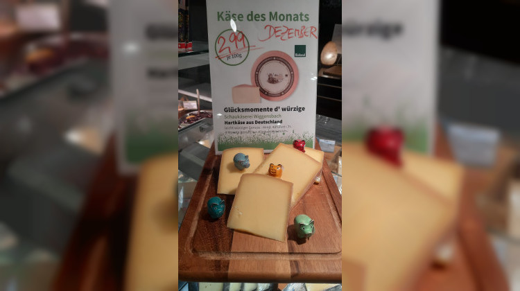 Der Naturalia Biomarkt bietet im Dezember einen Hartkäse aus der Schaukäserei Wiggensbach an. Der Käse heißt Glücksmomente d würzige. Er stammt aus Allgäuer Heumilch und trägt das Bioland Siegel. Der Preis liegt bei 2,99 Euro pro 100 Gramm. Die Reifezeit beträgt vier Monate. Der Geschmack wirkt leicht würzig und passt zu Brot, Raclette oder einer Käseplatte.